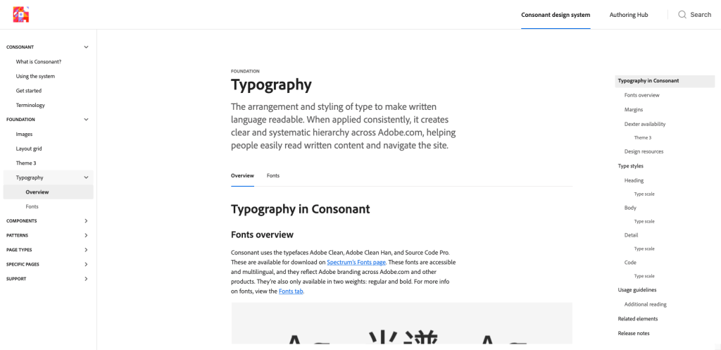 I led the information architecture and content strategy for consonant.adobe.com, Adobe’s web design system documentation site. This required translating highly technical specifications into a navigable, scalable system that serves both developers and designers. The following examples demonstrate my approach to structuring complex content for diverse user needs.